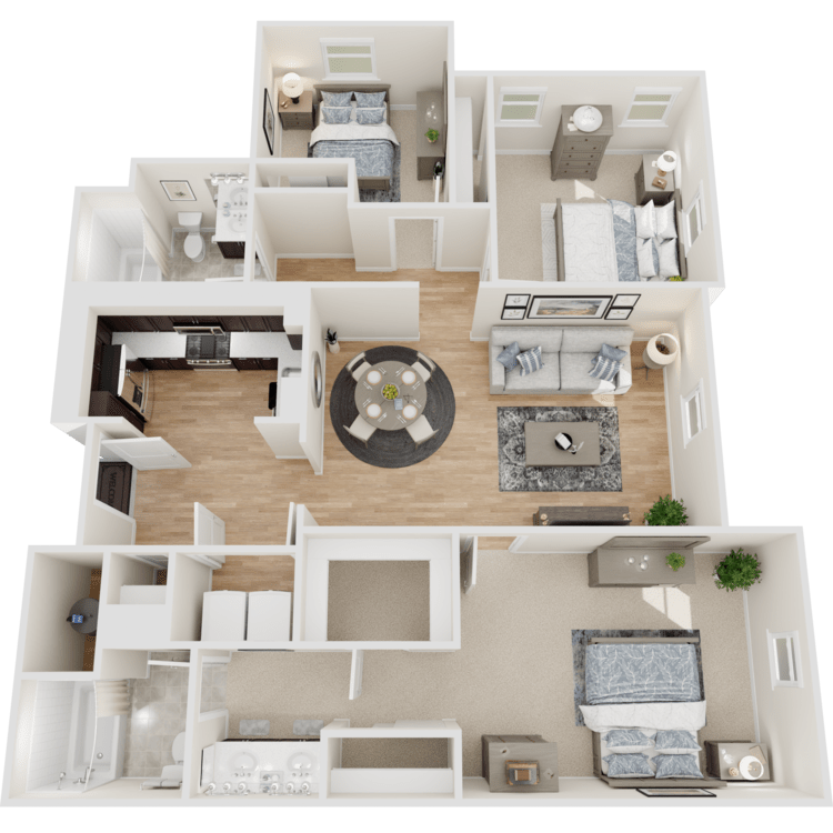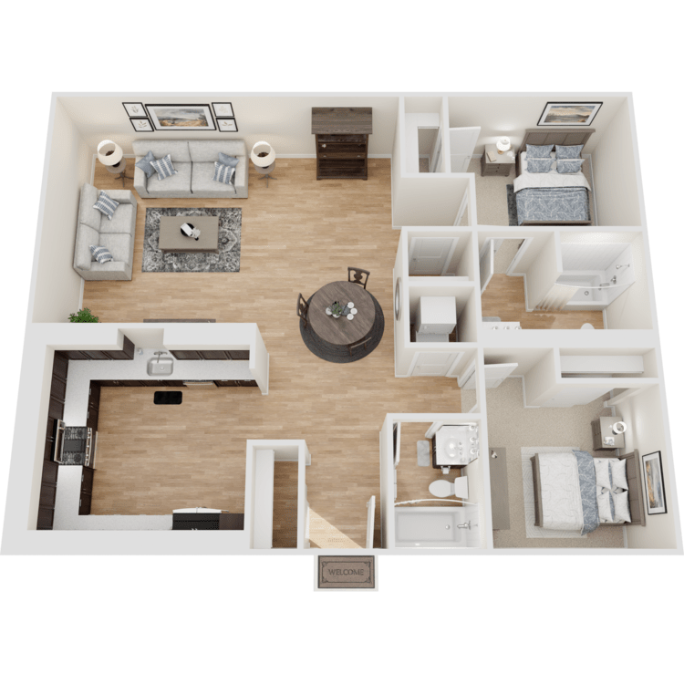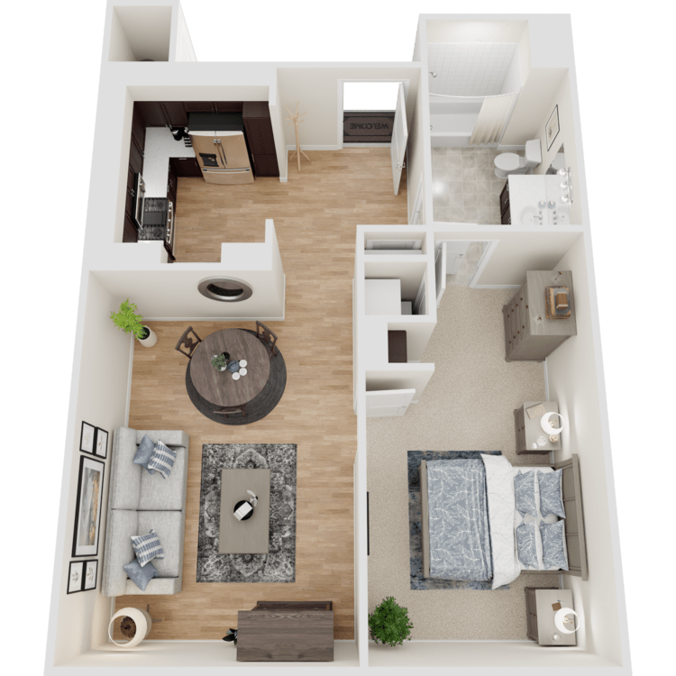 All renderings, 3D Tours, Walkthrough Video Tours, Matterport Tours, and other multimedia materials are provided for illustrative and reference purposes only. Renderings are an artist's conception and may not accurately represent the actual features, materials, finishes, or layout of any specific unit. Actual units may vary in detail, design, and appearance. Features, dimensions, pricing, and availability are subject to change without notice. Rent ranges provided are estimates and may fluctuate daily based on market conditions and availability. Applicants are strongly encouraged to verify all information – including unit finishes, layout, and pricing – with the leasing office prior to entering into any lease agreement. No representation or warranty, express or implied, is made regarding the accuracy or completeness of the information provided.